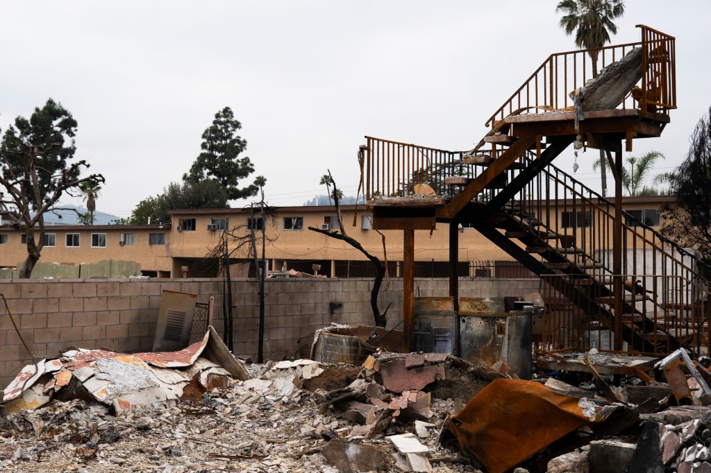 On my first visit to 403 Figueroa Drive — an apartment complex just south of the swath of homes incinerated by Altadena’s Eaton Fire — a woman I spoke with reflected that what was a nightmare for the grown-ups must be like summer camp for the kids: with no electricity in half of the building, packs of kids could be found running, scootering, and tricycling around the complex’s spacious concrete courtyard, their laughter echoing off the building’s tan, stuccoed walls throughout the afternoon.