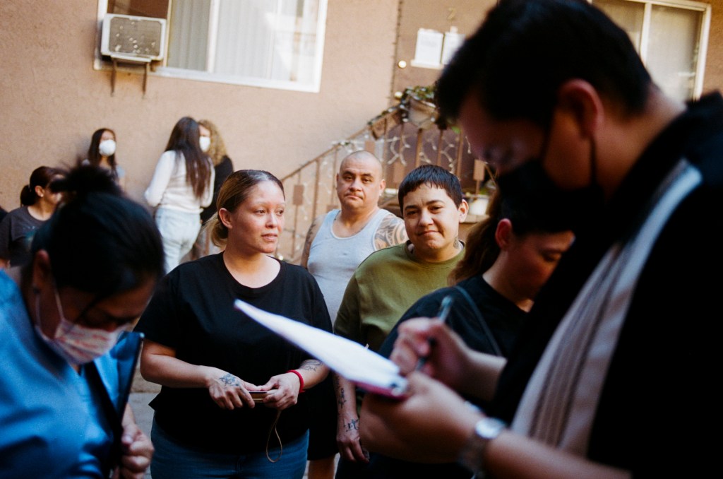 For the adults, though, the Eaton Fire has meant rebuilding their lives from the ground-up. In March, some residents could be found unpacking their belongings from plastic bags used to prevent the entry of toxic particulate matter suspected to remain in the air; others repainted their flats with paint cans provided by their landlord. Half of the units remain without power or electricity. Now, the residents of 403 Figueroa are organizing to force their landlord to fix their damaged homes. “I’ve been reading forms for people in this building for as long as I can remember,” said Brenda Lopez, a 29 year-old server who lives in an upstairs unit with her parents, siblings, and 7 year-old daughter Mylady, and she is now representing the some 40 families who live in the apartment complex in their fight with their landlord. “So this all feels a bit like that, in a way: standing up for my neighbors.”