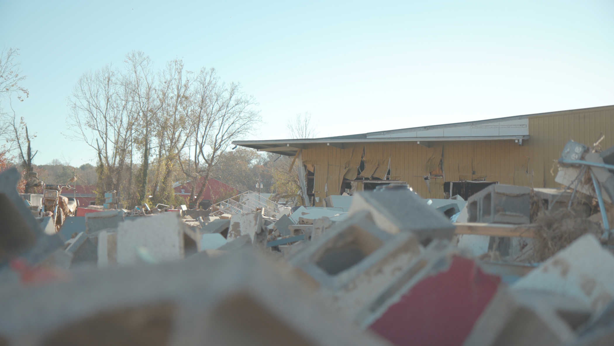 It was shocking to walk through town. Along the French Broad, water levels that rose as far as 27 feet clearcut every tree and manmade structure — while just a few paces up from the river, life carried on as normal. We wanted the visual style to reflect this disjunct: stark on the one hand, vibrant on the other.
