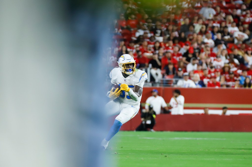 Chargers safety Jaylen Jones (35)during the San Francisco 49ers’ game against the Los Angeles Chargers in Santa Clara on Aug. 23, 2025. The 49ers’ third game of the 2025 NFL preseason, the team won against the Chargers 30-23.